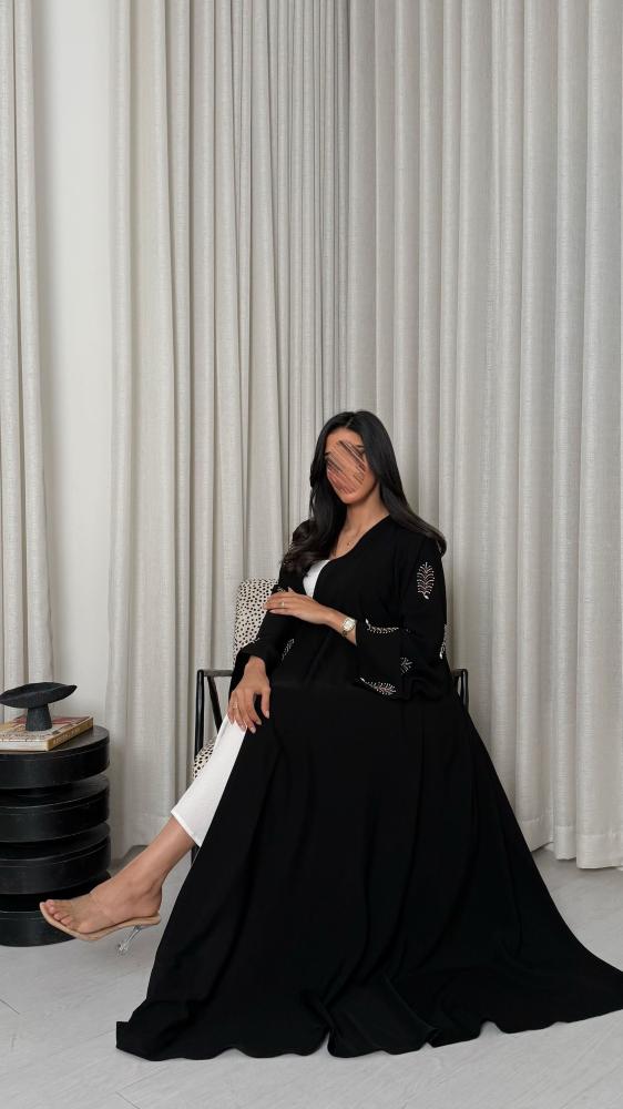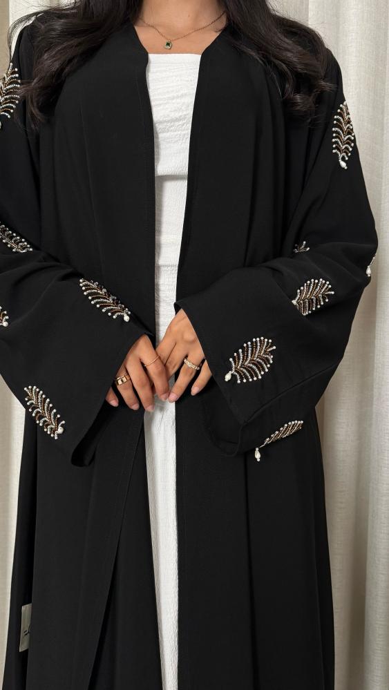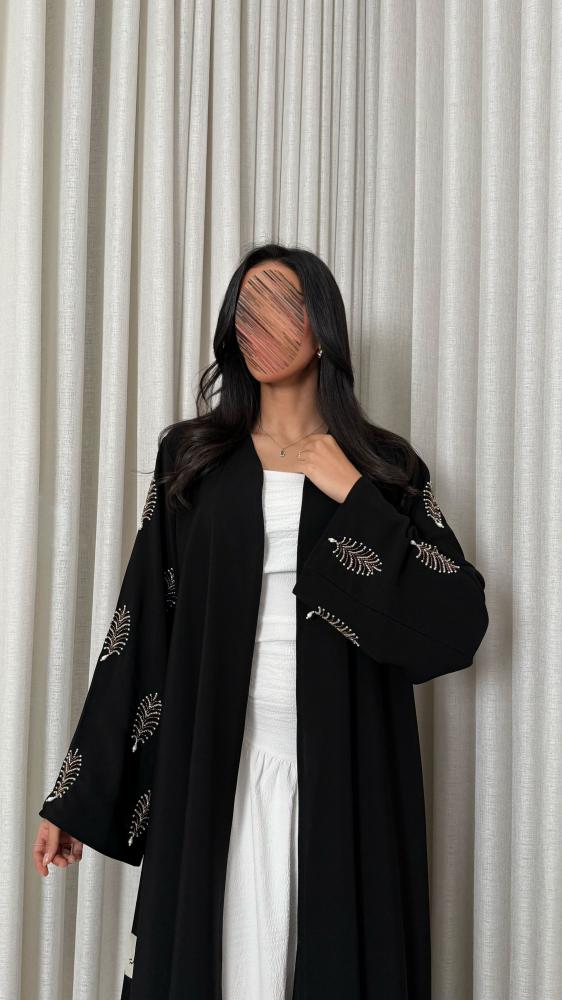 كريب صالونه اسود مع شك خرز مشروك فضي وذهبي