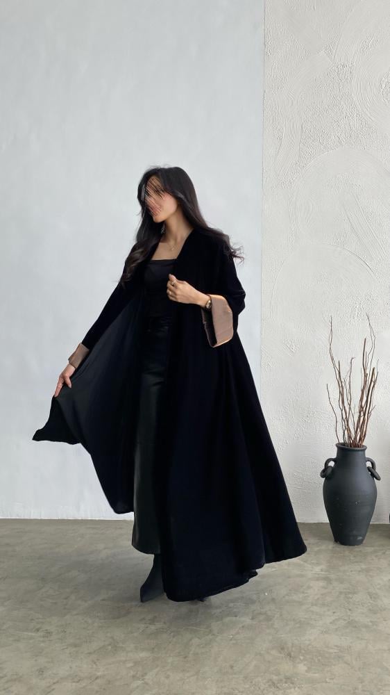 مخمل اسود نص كلوش مع لاميه عودي